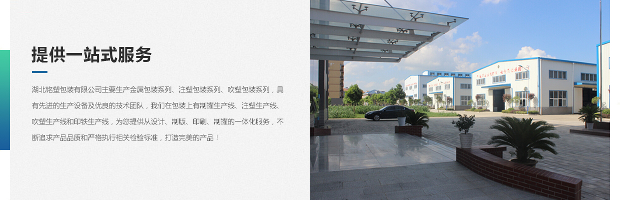 湖北銘塑包裝有限公司一家集研發(fā)、生產(chǎn)、銷(xiāo)售于一體的較優(yōu)秀民營(yíng)企業(yè),技術(shù)力量雄厚,產(chǎn)品質(zhì)量可靠。位于交通暢順,百業(yè)興旺、經(jīng)濟(jì)富裕、政策開(kāi)放的孝感開(kāi)發(fā)區(qū)域。我們企業(yè)的營(yíng)銷(xiāo)戰(zhàn)略是以建筑為土壤,以產(chǎn)品為種子,以質(zhì)量為肥料,讓綠色鋪滿全球。憑借多年來(lái)的行業(yè)經(jīng)驗(yàn),公司不斷進(jìn)行創(chuàng)新和研發(fā),為市場(chǎng)提供更廣泛的產(chǎn)品應(yīng)用領(lǐng)域和更好環(huán)保節(jié)能產(chǎn)品,為國(guó)家能源環(huán)保戰(zhàn)略和可持續(xù)發(fā)展戰(zhàn)略作出應(yīng)有的貢獻(xiàn)。 湖北銘塑包裝有限公司主要生產(chǎn)金屬包裝系列、注塑包裝系列、吹塑包裝系列,具有先進(jìn)的生產(chǎn)設(shè)備及優(yōu)良的技術(shù)團(tuán)隊(duì),我們?cè)诎b上有制罐生產(chǎn)線、注塑生產(chǎn)線、吹塑生產(chǎn)線和印鐵生產(chǎn)線,為您提供從設(shè)計(jì)、制版、印刷、制罐的一體化服務(wù),不斷追求產(chǎn)品品質(zhì)和嚴(yán)格執(zhí)行相關(guān)檢驗(yàn)標(biāo)準(zhǔn),打造更好的產(chǎn)品!
